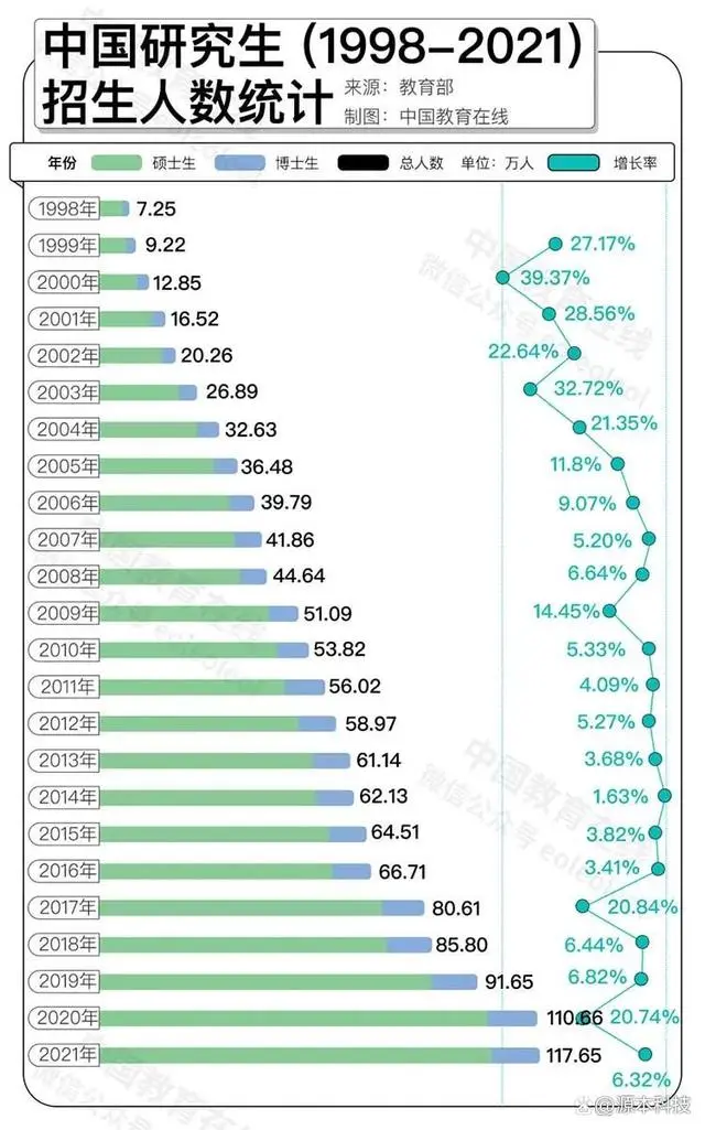碩士是真的不缺,2021年全國博士生招生12.58萬人,碩士生招生105.07萬人。